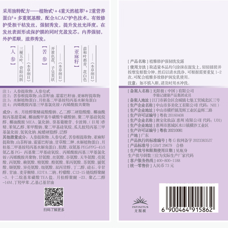 无限极植雅修护强韧洗发露 强韧洗发露400g
